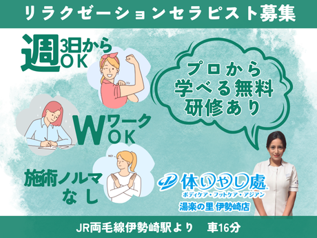 体いやし處 / 湯楽の里 伊勢崎店 リラクゼーションセラピストの募集詳細