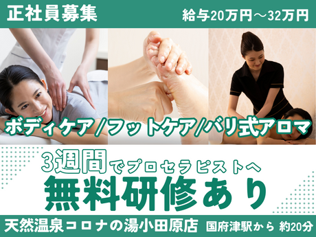 【小田原コロナワールド内】リラクゼーションセラピスト(ボディ、リフレ、アロマ)大募集!未経験歓迎☆経験者優遇!【遠方の方はWEB面接も実施中です♪】