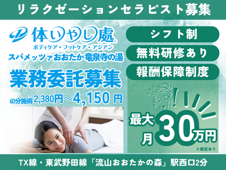 リラクゼーションセラピストのオープニングスタッフを募集します!!